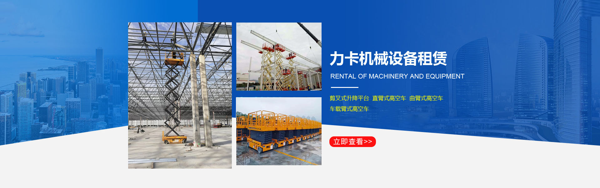 洛陽(yáng)力卡機(jī)械設(shè)備租賃有限公司是一家從事高空作業(yè)平臺(tái)租賃的企業(yè)。公司現(xiàn)有6-12米剪叉式升降平臺(tái)、16-20米曲臂式高空車、20-58米直臂式高空作業(yè)車、自行越野剪叉車等,車輛新、型號(hào)齊全、可滿足各種高度、各種環(huán)境的高空作業(yè)。公司全部采用品牌設(shè)備安全又可靠。